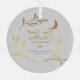 This design features 'Our First Christmas Married' in a festive calligraphy script in gold colour, surrounded by a light-of-the-moon botanical wreath. Easily personalise your names and date of choice. An Ideal, lasting, and memorable Christmas holiday gift for the newlyweds' first holiday as a married couple.