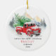 Classic Christmas holiday red truck ornament for first married Mr. and Mrs. Add the first name of the wife or husband on the reverse side and a short custom message. Add your names and the year just in time for the holidays as you spend your time together as a family. Makes a perfect keepsake gift for your son or daughter in law.