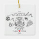 Celebrate love and new beginnings with this charming Our First Christmas Married ornament. Featuring a hand-drawn illustration of a “Just Married” car with tin cans, wedding rings, bouquet, and festive holiday accents, this keepsake is the perfect way to remember your first holiday season as newlyweds.