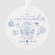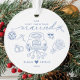 Celebrate love and new beginnings with this charming Our First Christmas Married ornament. Featuring a hand-drawn illustration of a “Just Married” car with tin cans, wedding rings, bouquet, and festive holiday accents, this keepsake is the perfect way to remember your first holiday season as newlyweds.
