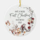 If you're looking for unique gifts for couples and newlyweds our custom First Christmas Married ornament with name and year is the perfect choice. It features a unique watercolor design with florals and winter animals accompanied by custom text making it a great personalised gift.