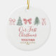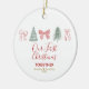 Celebrate your first Christmas together with this beautifully minimalist ornament featuring hand-drawn Christmas bows and winter trees. The soft festive artwork and elegant script lettering create a timeless keepsake for couples celebrating their first holiday season as “us.”