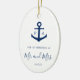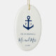 Did you get married this year? Add a memory to your tree with this wedding keepsake ornament featuring an anchor with your monogram on either side along the words, "Our First Christmas as Mr. and Mrs." and the year in navy blue over a white background. The backside has your favourite photo. This ornament also makes a great gift to a newlywed couple for their first Christmas.