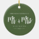 Celebrate your first Christmas as Mr and Mrs with this pretty keepsake ornament. The simple design feature a photo of the couple surrounded by a watercolor wreath of holiday greenery. The reverse side is coordinated in green. Personalise with your married name and the year.