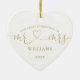 Our First Christmas Mr Mrs Gold Heart Script Photo Ceramic Ornament