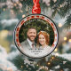 Celebrate your first holiday season as a married couple with this elegant "Our First Christmas as Mr. & Mrs." metal photo ornament.