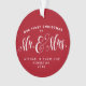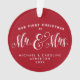 This "Our first Christmas as Mr. and Mrs." ornament featuring unique script typography and date and place on the back is the perfect way to commemorate your first married Christmas. The red background colour can be changed by clicking "customise further."