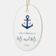 Did you get married this year? Add a memory to your tree with this keepsake ceramic ornament featuring an anchor with your monogram on either side along with the words, "Our First Christmas as Mr. and Mr." and the year in navy blue over a white background. The backside has your favourite photo. This ornament also makes a great gift to a gay newlywed couple for their first Christmas.