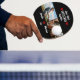Our First Christmas Together 2 Photos Keepsake Ping Pong Paddle. Modern personalized hockey paddle 2 photos, modern and trendy typography saying Our first Christmas together, 3 red hearts, names and year. Add your names, 2 photos and the year and make a lovely sports gift for your boyfriend or girlfriend.
