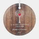 Our first Christmas together glass ornament. Rustic dark wood background with white love tree illustration.