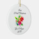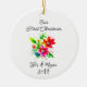 Add your names and the year to this cute personalised, "Our First Christmas" Christmas ornament with pretty watercolor flowers.