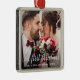 Our First Christmas Wedding Photo White Script Metal Ornament
