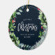 christmas wreath with a blue background and white script text. The text and colours and image at the back can be personalised.