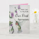 Give a happy first anniversary card to your wife to express your love and happiness sentiment. A romantic design of a pretty hummingbird garden sends a message of love in feminine colours of pink, grey and green. Perfect for women who enjoy sweet birds and flowers.