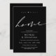Our first home, housewarming party invitation card. Planning a housewarming party in celebrating your new home with your family and friends? Invite your guests with this beautiful and perfect modern calligraphy in elegant black and white themed housewarming party invitation card. Add your details.