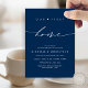 Announce and share your happily ever after in style with our modern navy blue theme design (our first home) new home announcement and please keep in touch card. It is ideal for couples who have decided to share their happiness and proudly inform their new home to their valuable family and friends. With its sophisticated yet playful design, this card is sure to set the tone for an unforgettable event. Designed by TeeshaDerrick