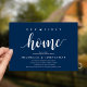Our first home, new home housewarming party invitation card ("our first home") in navy blue theme, with cute little heart. Planning a housewarming party in celebrating your new home with your family and friends? Invite your guests with this beautiful and perfect Rustic calligraphy themed housewarming party invitation card.