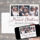 Send joyful holiday wishes as a new Mr. & Mrs! Celebrate marriage as newlyweds and share three of your favourite wedding pictures with a stylish custom photo collage "Our First Married Christmas" holiday card. All text on this template is simple to personalise to include any wording, such as Merry and Married, Merrily Married, Happy Holidays, Seasons Greetings, New Year Cheers etc. Modify or delete message on back to use as wedding thank you and Christmas card combined. (IMAGE PLACEMENT TIP: An easy way to centre a picture exactly how you want is to crop it before uploading to the Zazzle website.) The modern minimalist black, white and burgundy design features trendy dark red handwritten style script typography and a unique photo grid with 3 images of your choice. Family and friends will love displaying this elegant customised card. Cheers to merrily ever after!