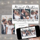 Send joyful holiday wishes as a new Mr. & Mrs! Celebrate marriage as newlyweds and share four of your favorite wedding pictures with a stylish custom photo collage "Our First Married Christmas" holiday card. All text on this template is simple to personalize to include any wording, such as Merry and Married, Merrily Married, Happy Holidays, Seasons Greetings, New Year Cheers etc. Modify or delete message on back to use as wedding thank you and Christmas card combined. (IMAGE PLACEMENT TIP: An easy way to center a picture exactly how you want is to crop it before uploading to the Zazzle website.) The modern minimalist black and white design features trendy handwritten style script typography and unique photo grid with 4 images of your choice. Family and friends will love displaying this elegant customized card. Cheers to merrily ever after!