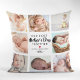 Personalised mother's day picture pillow featuring 8 photos for you to change to your own, the cute saying "our first mothers day together", a red heart, names, and the year.