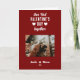 Our First Valentine's Day Together Photo Red Holiday Card. This card has a custom photo, modern and trendy typography saying Our first Valentine's Day together, 3 red hearts, names and year. Add your names, photo and the year and your note inside the card.
