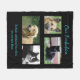 Black fleece blanket with four large templates for pictures of pets. Aqua blue text at top and bottom to include information about your "fur babies". Easily upload normal size images to the templates, which will fill each space.