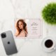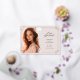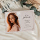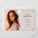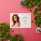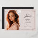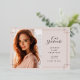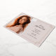 Beautiful graduation photo announcement features a vertical or portrait orientated photo aligned at the left, with "our graduate" and your graduate's name, school, and graduation year to the right. Delicate geometric detailing in rose gold foil completes the look. Add a personal message to the back, along with an additional photo.