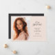Beautiful graduation photo announcement features a vertical or portrait orientated photo aligned at the left, with "our graduate" and your graduate's name, school, and graduation year to the right. Delicate geometric detailing completes the look. Add a personal message to the back, along with an additional photo.