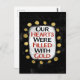 A cute typographic design that says "Our Hearts Were Filled With Gold". It's black and red text on a white rectangle with funky, playful gold dots surrounding it, all on a black background.