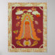 My folk art depiction of Our Lady of Guadalupe, floating above a Cherubin, and surrounded by sacred hearts comes in several different colour schemes, and on different products.