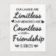 Celebrate the beauty of true friendship with this heartfelt “Our Laughs Are Limitless, Our Memories Are Countless, Our Friendship Is Endless” design. This elegant black and white friendship quote typography art captures the timeless bond between best friends, sisters, or loved ones. Perfect for personalised gifts, home décor, mugs, t-shirts, pillows, cards, notebooks, and more on Zazzle!