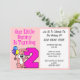 Our Little Bunny Is Turning Two featuring a cartoon rabbit. Perfect for a baby girl turning two years old. It features a cartoon bunny and a pink background. Great for a Spring time birthday.