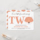 Our little fox is turning two second birthday invitation. This invitation is orange, white, and brown with the word "Two" in large letters with a fox face illustration as the last letter of the word. Simply, customise this invitation, add it to your cart, and happy birthday to your wonderful toddler!