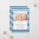 Announce the arrival of your baby boy in style with classic and simple birth announcement cards that feature a photo of your baby framed by preppy horizontal stripes and a little bow tie design accent. Cloud blue, slate blue, charcoal grey, and white colours.