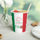 Our Little Meatball is Turning Two Birthday Party Paper Cups. Celebrate your little one's second birthday with a fun Italian twist! This "Holy Ravioli! Our Little Meatball is TWO" design features a cute, cartoonish meatball character and is perfect for a second birthday party with an Italian theme. The vibrant Italian flag colors add a festive touch, making it a memorable addition to your celebration. It's an adorable way to mark this special milestone for your "little meatball."
