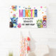 Fun and colourful Monster themed Birthday Party Banner. Our Little Monster is turning (add age), name and date.