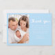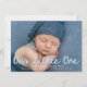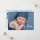 Celebrate your new arrival with this sweet and modern photo birth announcement featuring your baby’s horizontal photo and the phrase “Our Little One” in light blue handwritten script. The baby's name and birth stats are displayed below in crisp white lettering, creating a clean and contemporary look. The back of the card includes a vertical photo and space for a personalised thank you message, making it a meaningful keepsake for friends and family. A perfect design for baby boys or anyone who loves a soft, serene colour palette.