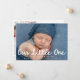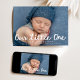Celebrate your newest arrival with this sweet and modern “Our Little One” photo birth announcement card. The front features your baby’s horizontal photo with “Our Little One” displayed in a handwritten white script, paired with your baby’s name, birth date, and stats below. The back of the card includes a vertical photo and a customisable thank you message, allowing you to express gratitude to loved ones while sharing another special moment. Perfect for baby boys, girls, or gender-neutral announcements, this photo-forward design makes a heartfelt keepsake for friends and family.