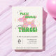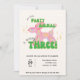 Get ready to pop, twist, and celebrate with this playful invitation from Yellow Moon Atelier! A shiny pink iridescent balloon animal steals the show, while bold green bubble script joyfully announces, "Our little party animal is turning three!" This design is equal parts fun and fabulous—just like your little one!