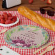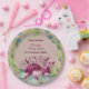 A purple themed party for your little one. "Our little pumpkin is turning ONE" 1st Birthday party paper plates for your guests. Wow them with the lush greenery wreath and vibrant purple fall pumpkins party supplies. The design has autumn leaves, a circular greenery wreath and purple pumpkins to celebrate the colours of Fall. The illustration uses modern script and typography that can be easily customised. The reverse side has a matching design.