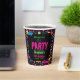 Custom Retro Neon 80’s Birthday Party Paper Cups. Personalized neon 80s theme drinkware perfect for adult milestone birthday celebrations.