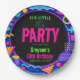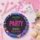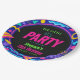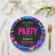 Our Little Retro Neon 80’s Birthday Party Paper Plates. Personalized neon 80s theme tableware perfect for a fun and colorful birthday celebration.