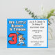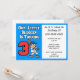 Our Little Slugger Is Turning Three cute invite featuring a cartoon baseball player. Great for a baby boy turning three years old. Let family and friends now that your little future ballplayer is turning three and they're invited to the party!