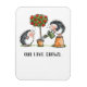 Cute hedgehog couple tending to potted love tree topiary. "Our love grows" text.