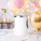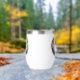 Beautiful design wine tumbler of a bride and groom ready to say their vows in front of a beautiful moonlight. Their is a floral arch surrounding them.