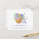 Pretty moving announcement postcard with watercolor gardening theme and handwritten script. The design features a rattan basket planter with purple and apricot orange flowers, a hand fork and watering can. It reads "our new home" followed by your new address and names. You can also add a personalised message on the back.