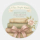 Our New Chapter Awaits Pink Bow Baby Shower Classic Round Sticker