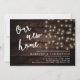 Our new home, housewarming party invitation card in modern rustic cottage dark wood string lights theme. Planning a housewarming party in celebrating your new home with your family and friends? Invite your guests with this housewarming party invitation card.