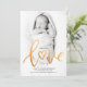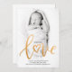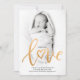 Elegant Gold Script Calligraphy our new Love baby birth announcement. Perfect for a Valentine's Day Baby Photo Holiday Card. Personalise this with your own details and photo.