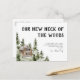 An elegant and modern new home and moving announcement featuring hand-drawn watercolor illustration of wood cabin, pine trees and forest. Personalise it with your own new address details.